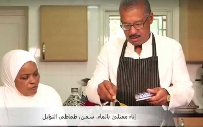 وظهر السفير رفقة الطباخة خديجة في المطبخ، وهما يعدان شربة الحريرة التي تتكون من الخضار والحمص واللحم والماء والتوابل، كما قاما بإعداد حلويات مغربية.