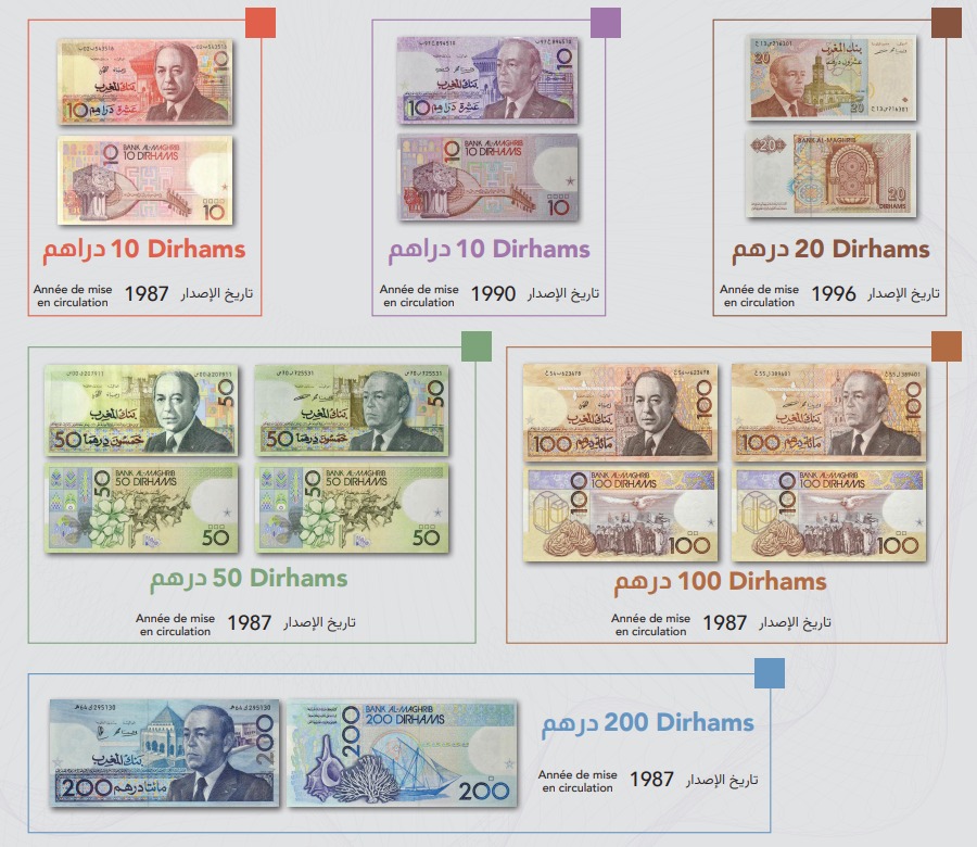 ▫️ أوراق 10 و50 و100 و200 درهم الصادرة سنة 1987