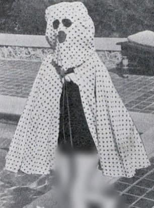 قبل اختراع واقي الشمس، كانت النساء التي تسبح يرتدون ملابس مثل هذه لحماية الرأس من الشمس.