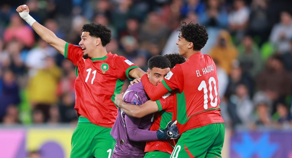 حقق المنتخب الوطني المغربي لأقل من 20 سنة إنجازا تاريخيا بتأهله الى نهائي كأس العالم لكرة القدم في الشيلي عقب تفوقه على المنتخب الفرنسي بنتيجة ( 5-4 ) بعد الاحتكام الى الضربات الترجيحية في المباراة التي جمعتهما على أرضية ملعب “إلياس فيغيروا براندير” بمدينة فالباراييسو برسم نصف نهائي هذه التظاهرة العالمية .