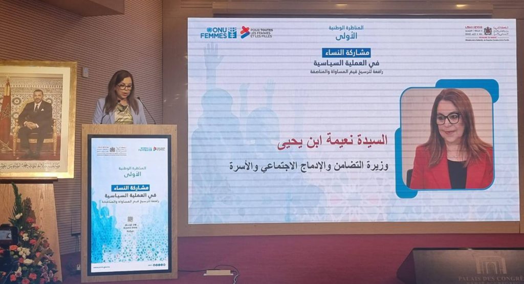 و افتتحت  أشغال  المناظرة الوطنية الأولى حول  موضوع “مشاركة النساء في العملية السياسية رافعة لترسيخ قيم المساواة” والتي تنظمها وزارة التضامن والادماج الاجتماعي والاسرة بتعاون مع منظمة الأمم  للمرأة٬ وفي كلمة افتتاحية اعتبرت وزيرة التضامن والادماج الاجتماعي والأسرة نعيمة بنيحيى، أن مشاركة النساء  ضرورية للاستفادة من كفاءتهن، ولتعزيز  تمتعهن بالحقوق السياسية، مضيفة أن تمكين المرأة يعد قضية مجتمعية تستلزم انخراط الجميع على حد سواء انسجاما مع مبدأ المساواة ومطلب الديمقراطية.