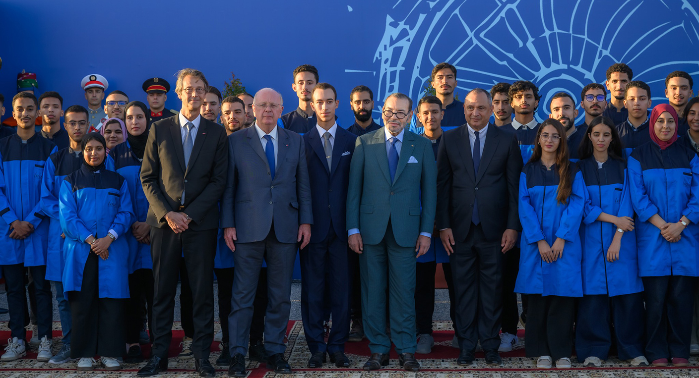 وبالمناسبة أيضا أخذت لصاحب الجلالة الملك محمد السادس صورة تذكارية مع مجموعة من الشباب في طور التكوين بمعهد مهن الطيران بالنواصر قصد ولوج المصنع