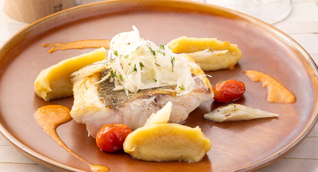 سمك الدرعي المشوي مع صلصة الثوم والبسباس