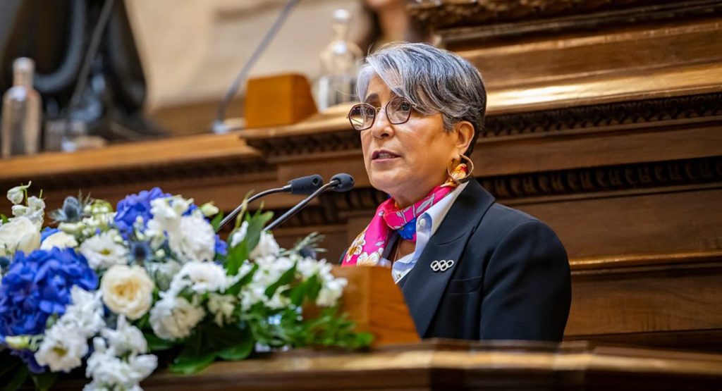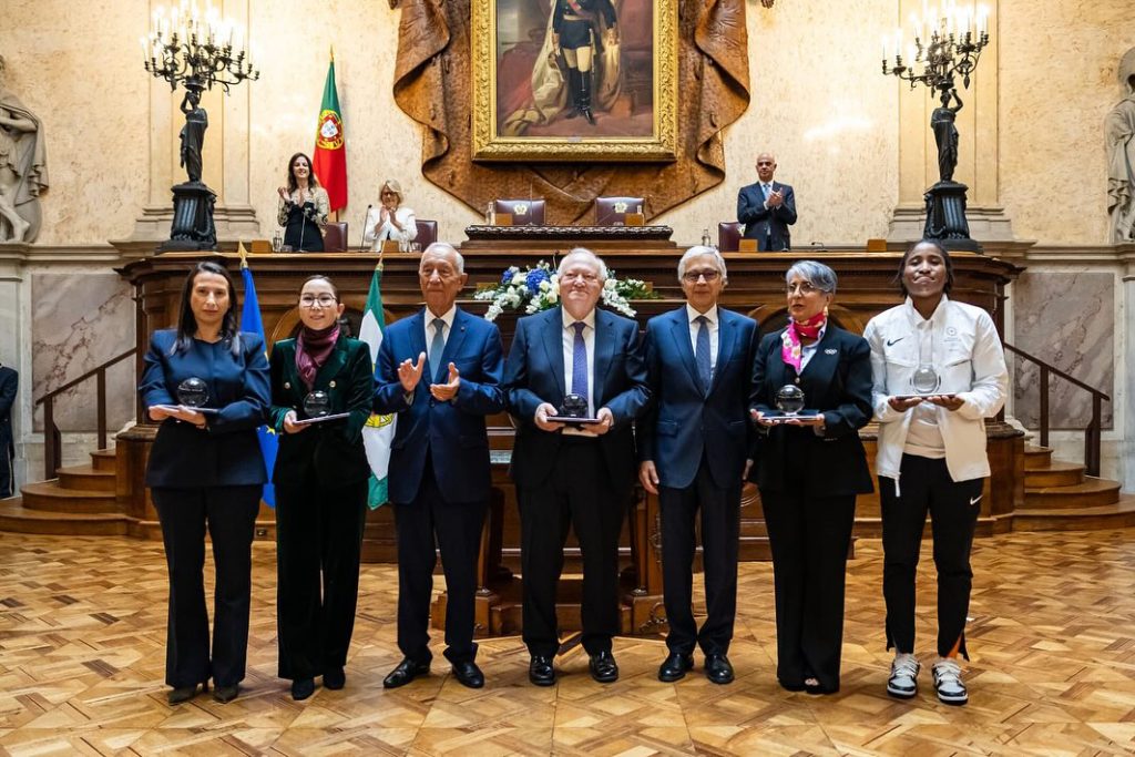 وسلم الجائزة للسيدة نوال المتوكل رئيس الجمهورية البرتغالية، السيد مارسيلو ريبيلو ذا سوزا، ورئيس الجمعية الوطنية الجمهورية البرتغالية، خوسيه بيدرو أغيار-برانكو، بحضور شخصيات بارزة تنتمي لعوالم السياسة، الأعمال، الفنون والإعلام.