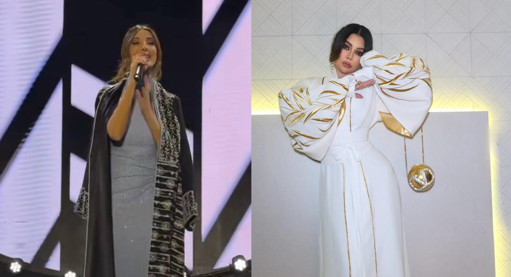خلال أداء أغنيتها الشهيرة “أقول أهواك” بمشاركة فرقة السامري السعودية، ارتدت هيفاء عباءة طويلة مطرّزة بالريش فوق فستانها، كما غطّت وجهها بـ برقع أبيض لامع، في خطوة تفاعل معها الجمهور بحماسة كبيرة، مؤكدين إعجابهم باللمسة التراثية المبتكرة التي أضافتها إلى الحفل